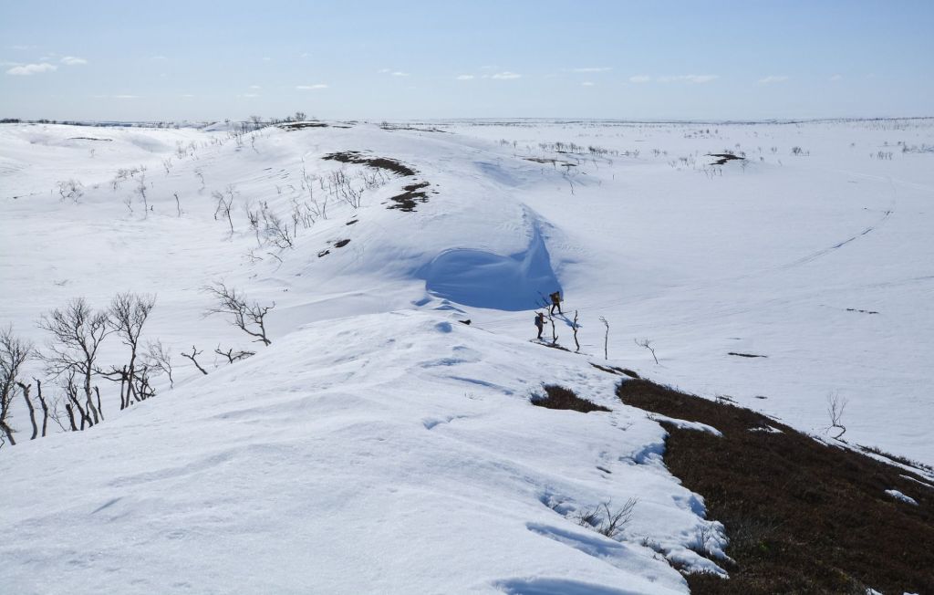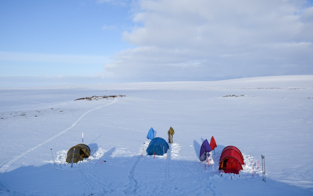 Toisen yön leiripaikka toimii myös välipäivän tukikohtana. Yövymme kaksi yötä suurten tunturien suojassa ja teemme päiväretken alueelle jossa tunturipöllökin on havaittu liitelevän.